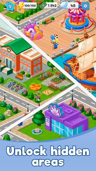 随着游戏的深入,你将解锁更多被地震摧毁的神秘区域。通过完成各种任务和挑战,你可以获得经验值提升建筑等级。每个区域都隐藏着独特的谜题和彩蛋,等待细心的玩家去发现。从简单的物品合并到复杂的城市规划,游戏难度循序渐进,让玩家在享受休闲乐趣的同时也能获得成就感。