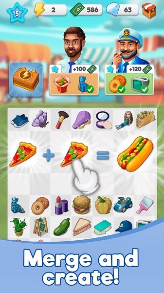 2、简单易上手的合并玩法,只需将两个相同物品拖拽合并就能产生新的物品。无论是线上还是离线状态,都能随时享受游戏的乐趣。