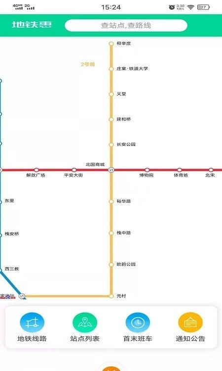 可以查看石家庄地铁线路的站点情况以及周边设施,支持实时客流监控和应急出口指引