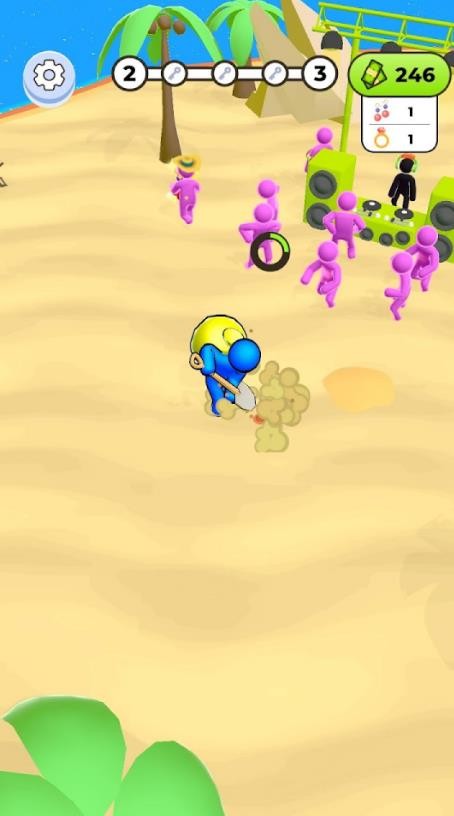 2、沙滩上游客众多,他们会四处走动,玩家需要灵活避开人群,专注挖掘。同时,观察游客的行为模式,可能会发现他们掉落的贵重物品,增加额外收入。