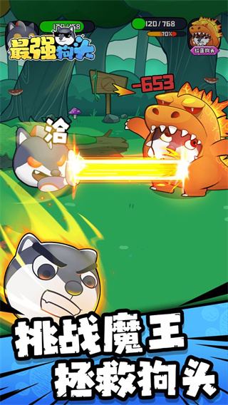 游戏的核心玩法围绕回合制对战展开,玩家需要指挥自己的狗头团队挑战数百个精心设计的关卡。随着游戏进程的推进,玩家可以解锁更多强力的狗头角色,并通过升级强化、装备收集等方式提升团队战斗力。游戏还提供了丰富的皮肤系统,玩家可以为心爱的狗头角色更换各种炫酷造型,打造个性化的战斗阵容。