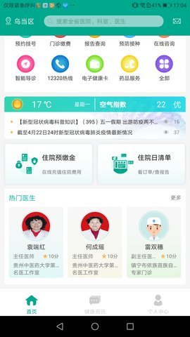 在线预约挂号:支持贵州省200多家省市级医院在线预约挂号;