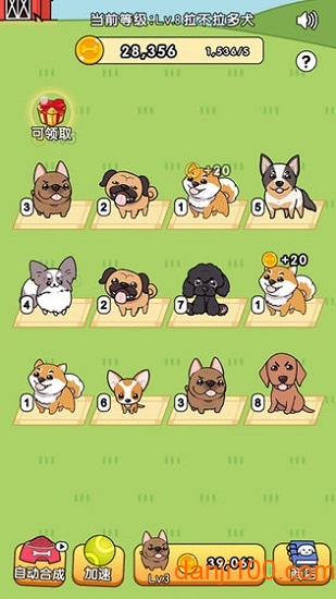 1、创新的合成玩法,通过简单的操作就能解锁更多可爱的狗狗品种,同时获得丰厚的游戏收益;