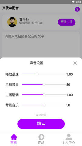 声优配音是一款基于语音合成技术的专业配音软件,适用于商场、商铺广告推行配音和街头小摊叫卖录音制造。
