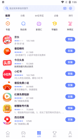 1、热门应用推荐:系统会实时分析应用下载量和用户评价,智能推荐当下最受欢迎的应用。同时提供各类特色专题,如"新游首发"、"装机必备"等,帮助用户发掘更多有趣实用的精品应用。