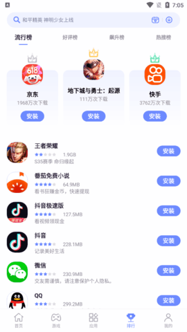 2、热门推荐:基于大数据分析的智能推荐系统,会为用户精准推送可能感兴趣的热门应用。同时提供编辑精选、排行榜等功能,帮助用户发现更多优质内容。