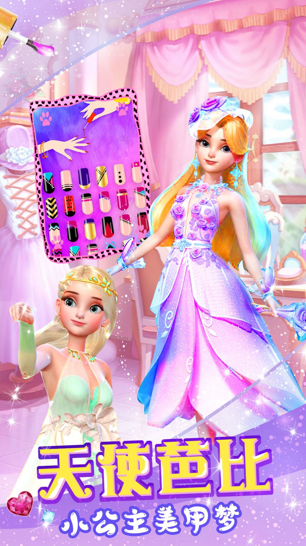 天使芭比美甲梦是一款以美甲艺术为核心的休闲手游,旨在为玩家带来轻松愉悦的游戏体验。游戏采用了色彩绚丽的画面风格,搭配可爱的角色形象,营造出温馨治愈的氛围。在这里,你可以尽情发挥创意,利用各种美甲工具和装饰品,亲手设计出独具魅力的美甲作品。游戏还模拟了真实的美甲店经营场景,你需要根据顾客的不同需求,细心打磨、装饰每一款美甲,从基础护理到复杂造型,每一步都考验着你的审美能力和动手技巧。无论是简单的单色涂鸦,还是精致的立体雕花,都能让你体验到美甲艺术的无限可能。