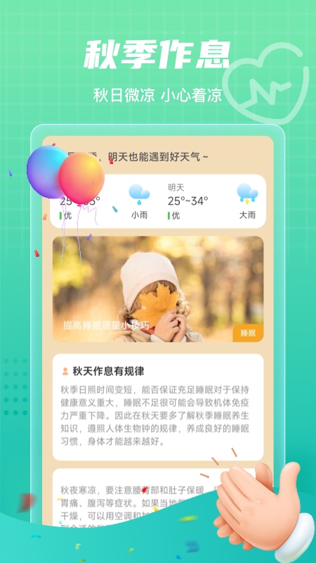 通过智能睡眠监测功能,记录您的入睡时间、睡眠时长和睡眠质量,生成详细的睡眠报告。app会根据您的作息习惯提供改善建议,帮助您建立规律的生物钟,从根本上提升生活质量。您还可以设置就寝提醒,避免熬夜,让每一天都充满活力。