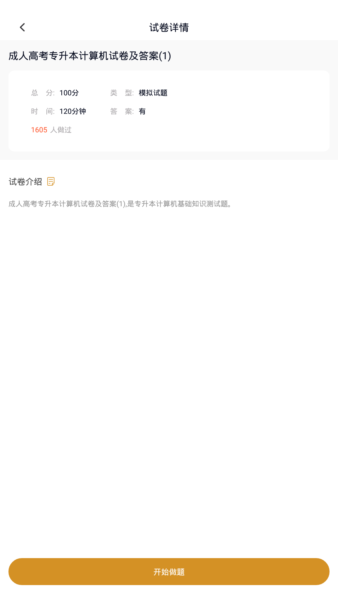 专升本考试是许多学子提升学历的重要途径,而专升本题库正是为考生量身打造的学习利器。该平台收录了海量实用题库,涵盖历年真题及模拟试题,内容全面丰富,高度还原真实考试场景。无论是考前冲刺还是日常练习,都能为考生提供强有力的支持。其智能化的学习功能和多样化的练习模式,让备考过程更加高效便捷。想要顺利通过专升本考试?这款题库将是您不可或缺的得力助手,快来下载体验吧!