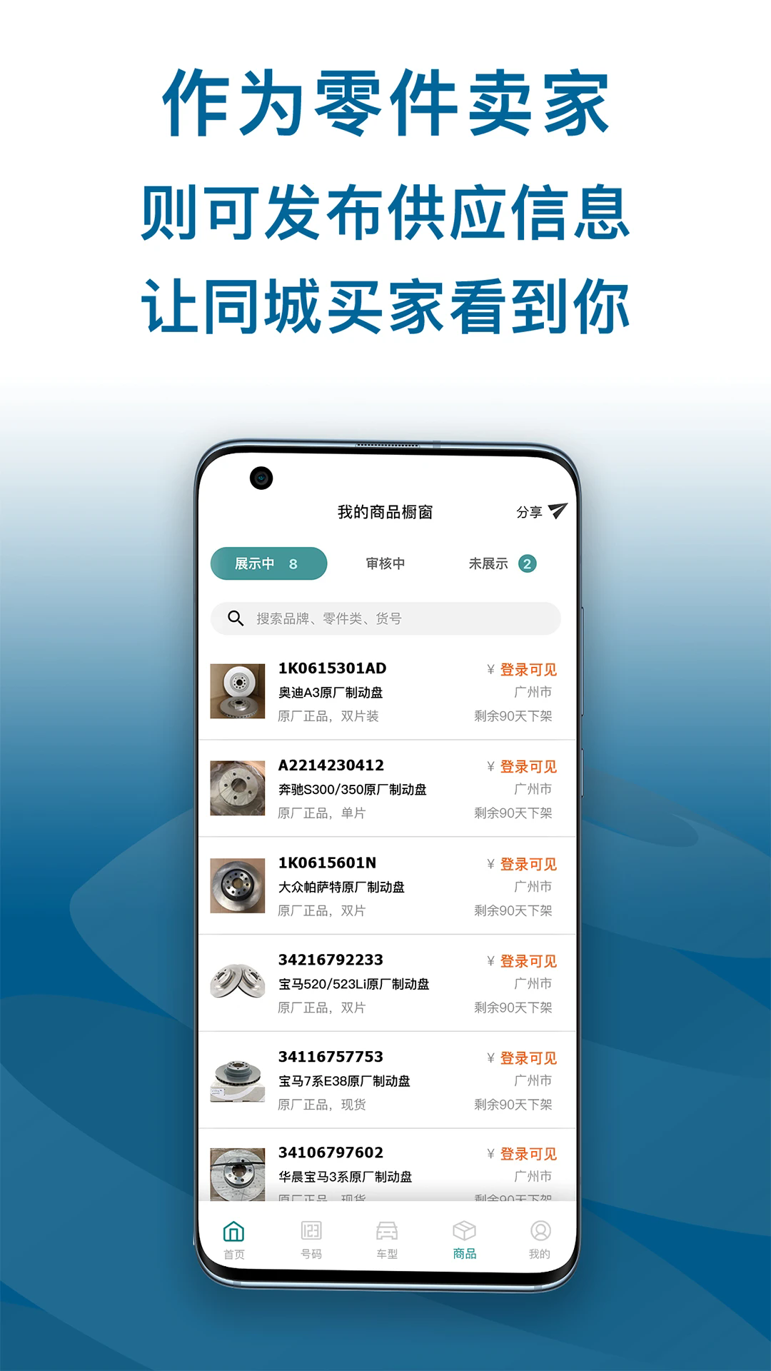 对于汽配买家而言,配易查提供了全方位的查询服务:通过扫描或输入VIN码即可获取车型信息,支持按车型或零件号查询配件详情,还能实时查看同城供应商库存情况。对于汽配卖家来说,平台提供了便捷的商品展示功能:只需上传零件照片并填写相关信息,就能向同城潜在买家展示库存。平台还支持在线沟通和比价功能,帮助买卖双方快速达成交易。