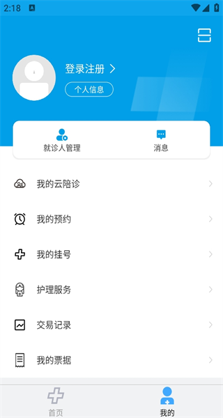 1、首页中带来了很多的医院相关的功能,根据需要来进行选择,点击右上方的预约挂号进入;