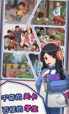 第八关:课堂上开小差的学生真不少。第一排玩手机和看漫画的男生,第二排吃辣条的女生和东张西望的男生,连讲台上睡觉的班委都需要管教。