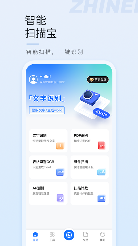 智能扫描宝APP是一款功能强大的专业拍照扫描工具,能够帮助用户轻松实现纸质文档的数字化转换。该应用集成了文字识别(OCR)、PDF转换、表格识别、证件扫描、AR测距、扫描计数等多种实用功能,无论是学习资料、办公文件,还是身份证、户口本等重要证件,都能快速扫描并生成高清电子文档,大幅提升工作和学习效率。智能扫描宝APP操作简单,识别精准,是学生、上班族和商务人士的得力助手,赶快下载体验吧!