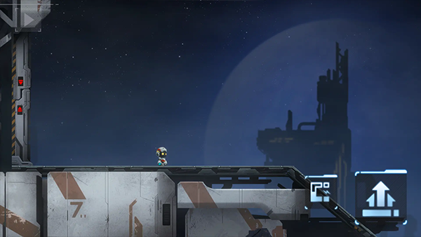 4、区域一:场景4 跌入机器人坟场的"默"触发了记忆闪回,短暂展现了研究员对话的片段。这里需要运用"装死"机制躲避敌人。与残骸互动后,将其拖至右侧压敏控制器上保持桥梁畅通。这个解谜需要观察环境布局,合理利用场景中的可互动元素。最后通过电梯升至二层,继续冒险。