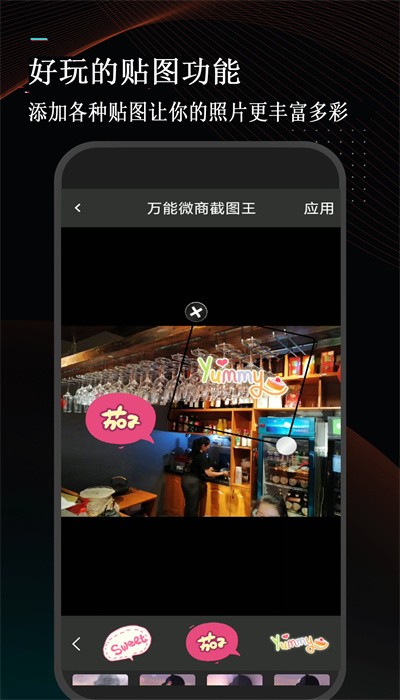 2、添加贴纸:拥有海量贴纸资源,涵盖各种风格和主题,用户可以根据需求自由搭配,为图片增添趣味性和个性化元素;