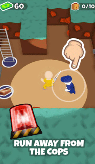 3、操作简单易上手,只需通过虚拟摇杆控制移动,点击按钮进行挖掘。但简单的操作背后蕴含着丰富的策略深度,玩家需要不断优化挖掘路线,提升越狱效率。