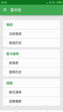 软件中图书馆的主要功能有:当前借阅和续借、借阅历史查询、图书推荐和查询、过期、个人信息查询等。