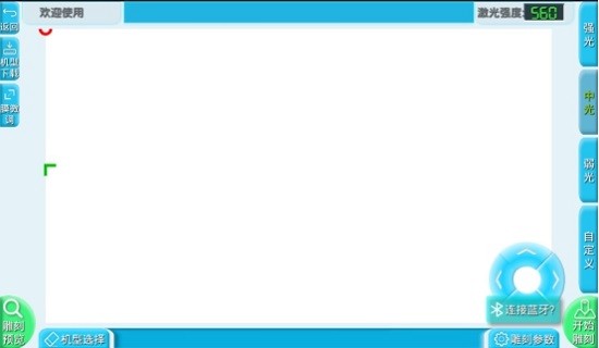 界面右侧设有【强光】【中光】【弱光】【自定义】四个快捷按钮,可以一键切换预设的激光强度等级。针对特殊需求,用户还可以在自定义模式下进行更精细的强度调节。