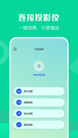 将手机连接到投影仪上,实现多屏交互,将手机上的视频、图片、音乐投影到大屏设备上播放,享受大屏视觉体验