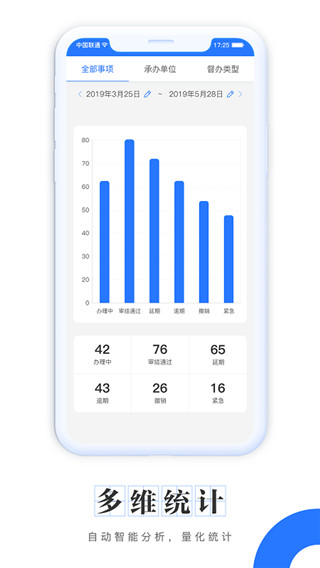 4、督办事项统计:提供多维度智能分析功能,通过直观的图形图表展示督查工作数据,便于管理者决策;