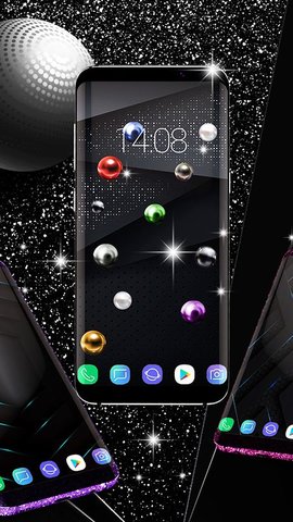 你会发现五个抽象的黑色壁纸与各种元素和线条,金属球元素会落在屏幕上。