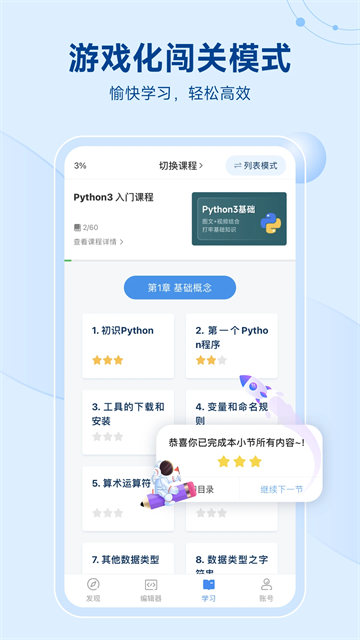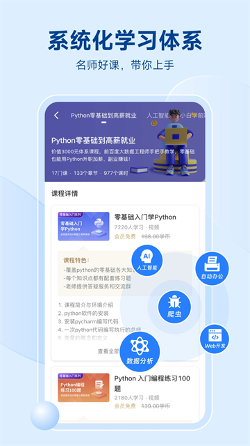 2.【微课即学即练】游戏化闯关学习,学练结合,快速掌握;每个知识点都配有对应的实战练习,通过即时反馈机制帮助用户巩固所学内容,让学习效果立竿见影。