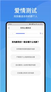 无忧心理测试是一款功能全面的心理测评软件,提供海量专业测试题库,帮助用户通过科学的评估体系了解自身心理状态。用户可根据当前情绪或需求选择对应测试模块,系统将基于答题数据生成个性化分析报告,不仅呈现精准的心理状态评估,还会给出切实可行的改善建议。平台采用智能算法与专业心理学理论相结合的方式,让每个人都能获得专业可靠的心理健康服务,从而更好地认识自我、调节情绪,以更积极的心态面对生活挑战。