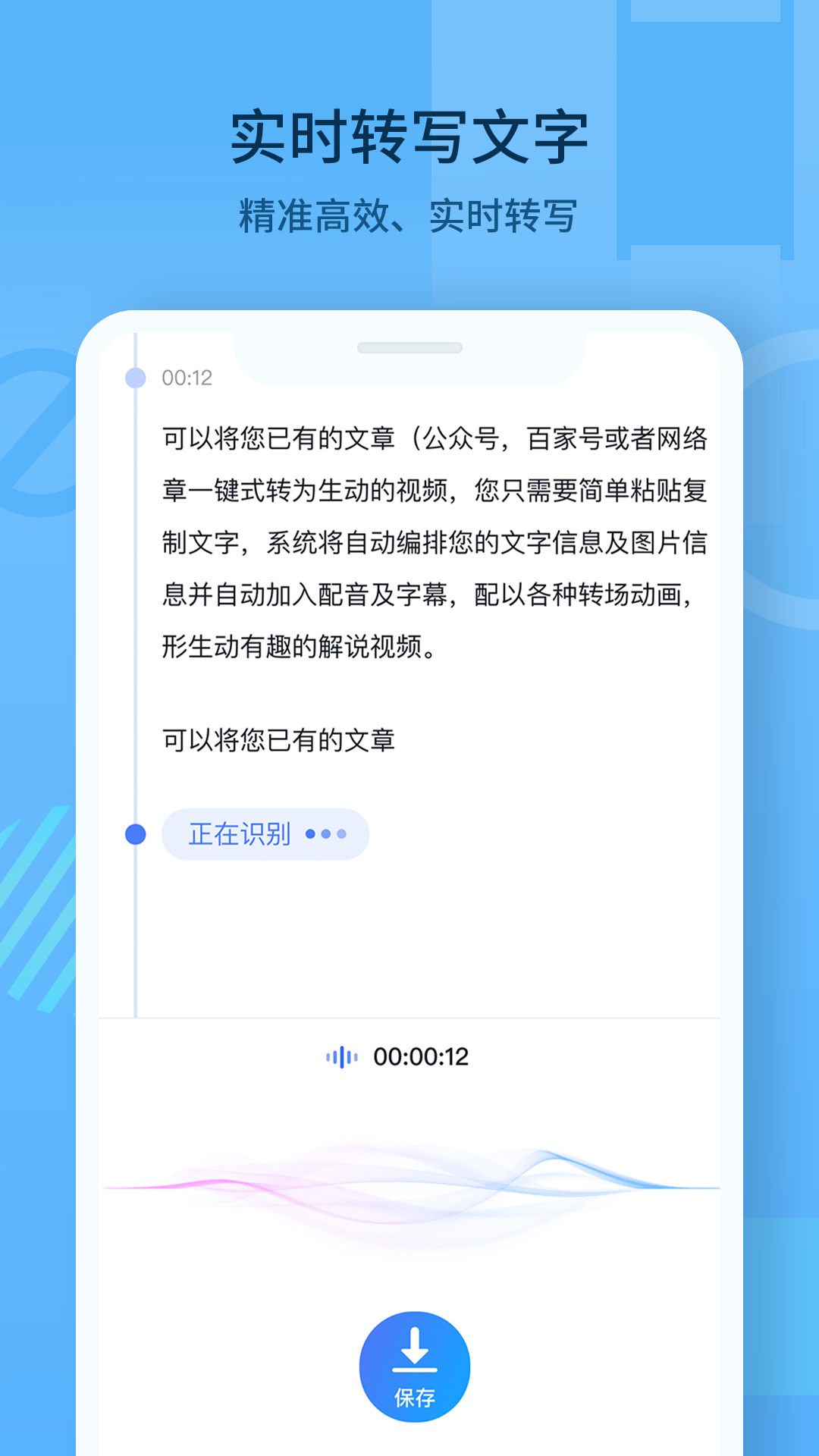 录音效果好,流畅清晰无杂音,帮助你记录重要内容方便回顾。内置专业级降噪算法,即使在嘈杂环境中也能保证录音质量。录音机功能不限时长高质量录音,会将您的录音文件保存在app内,用户可随时转换为文字。支持分段录音和标记功能,便于后期整理和查找关键内容。录音文件自动云端备份,确保数据安全不丢失。