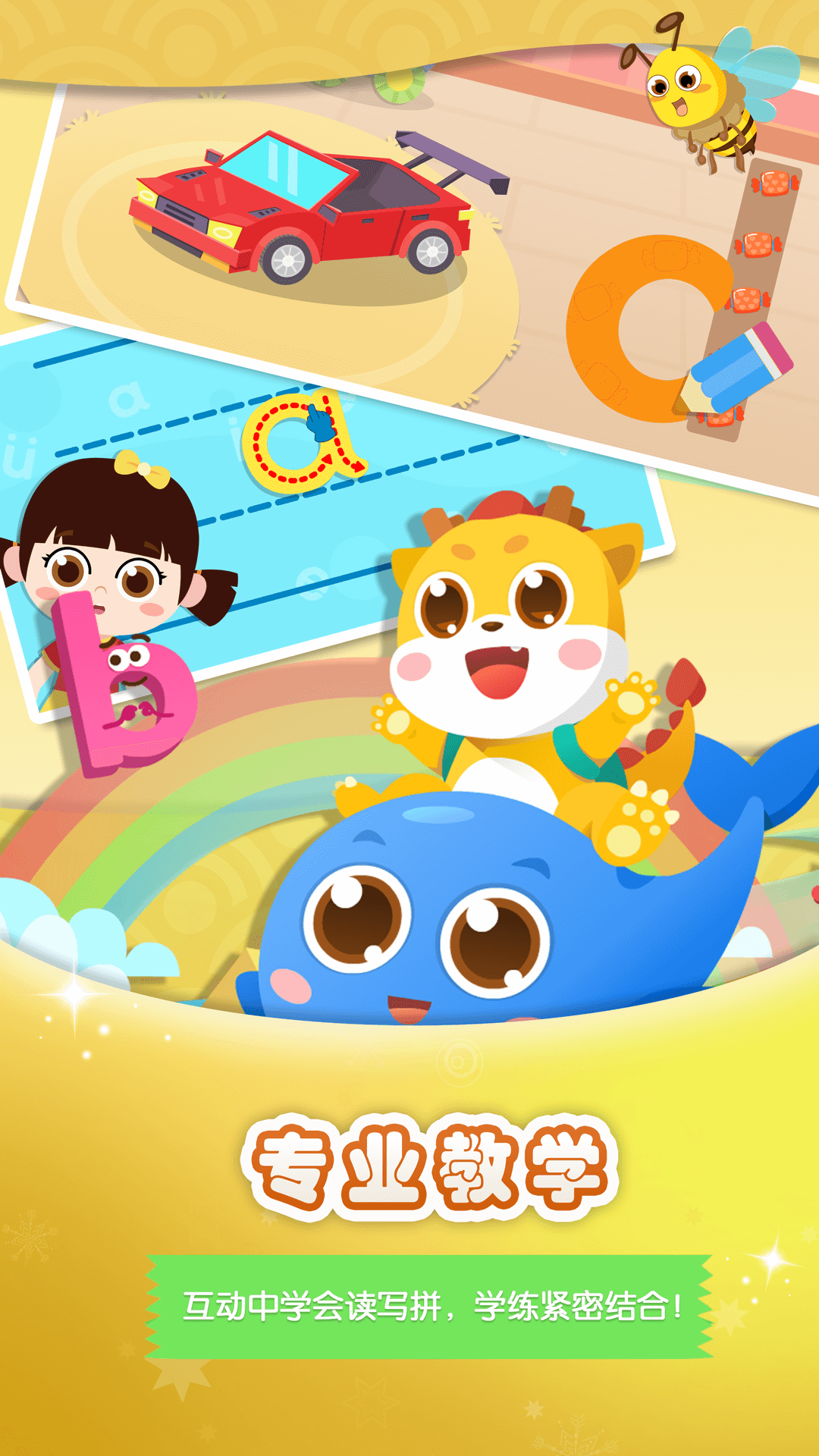【专业教学】课程分为认知、发音、书写、拼读和声调五大模块,每个模块都配有生动有趣的动画视频和丰富多样的互动练习。专业的拼音示范和发音指导,让孩子轻松掌握发音规律。通过调动听觉记忆和鼓励开口动手,采用孩子喜爱的互动方式,实现多维度的拼音教学效果。