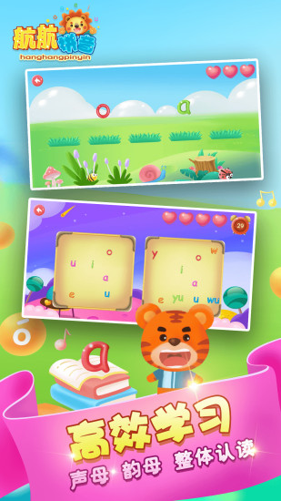 航航拼音安卓手机版是一款专为3-6岁儿童设计的趣味拼音学习软件。通过生动有趣的游戏化教学方式,帮助孩子轻松掌握拼音知识。软件全面覆盖声母、韵母和整体认读音节,提供标准发音示范和跟读功能,让孩子在互动中自然习得正确发音。精心设计的卡通界面和丰富的动画效果,让学习过程充满乐趣,有效激发孩子的学习兴趣。包含63个章节、400多节课程、300多个拼音组合和500多个汉字,系统化的学习内容能循序渐进地提升孩子的拼音能力,是家长辅导孩子学习拼音的得力助手。