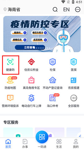 海南健康码app(海易办)是一款专为海南居民设计的健康码手机应用,除了实时查询海南健康码,还包含住房公积金、社保、医保、防疫地图、离岛等多项服务,还能够预约核酸检测,欢迎下载。
