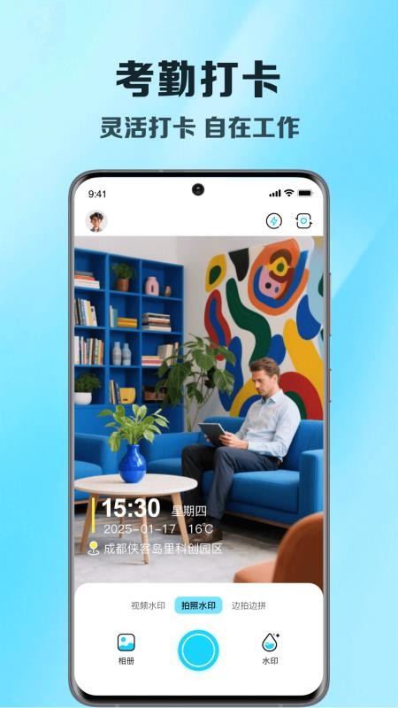 真实地点水印打卡工程是一款专为各类工作场景设计的智能拍照打卡应用,通过精准定位和时间戳功能,为用户提供真实可靠的记录工具。软件内置高清拍摄引擎,能够清晰捕捉现场细节,并自动添加包含时间、地点等关键信息的水印。无论是工程巡检、考勤打卡还是项目进度记录,都能通过丰富的水印模板实现专业化的文档管理。平台支持照片和视频双模式水印添加,操作流程简单高效,同时提供智能场景识别功能,可根据不同使用环境推荐最合适的模板样式。用户还能将带水印的素材一键导出分享,满足团队协作和汇报需求。