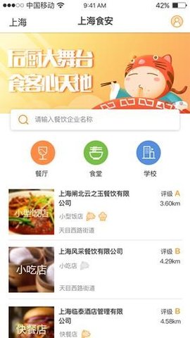 上海食安是一款在线食品安全管理的软件。在平台上用户可以看到当地各种餐厅,实时监控餐厅里面的做菜状态,为上海市民及时提供健康绿色的食谱,喜欢的用户快来下载体验吧。