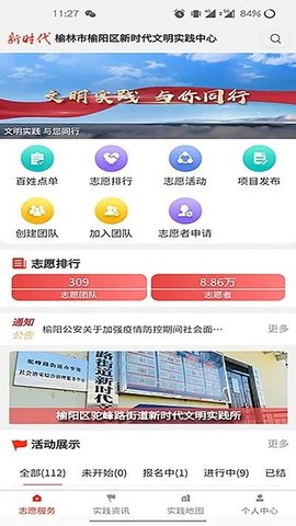 榆阳新时代app为您带来了很多服务。在平台上,你可以看到很多文明实践活动。你可以通过软件做志愿者,在线申请志愿者,在线查看你的参与活动,在线查看实践信息和各种项目,尝试参与一些你感兴趣的文明建设活动。