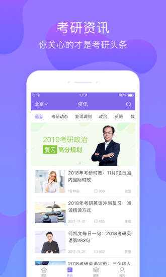 与全国800多所高校保持紧密合作,第一时间获取权威的考研资讯。平台设有专门的资讯板块,涵盖招生简章、考试大纲、分数线等重要信息,确保考生掌握最新动态。