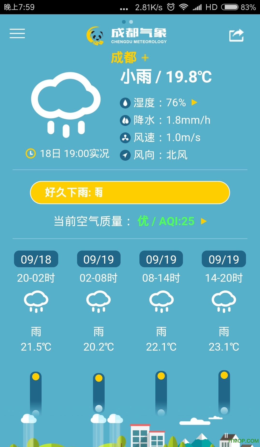 天气实况:支持程序使用者当前所处位置的气象实况资料(气温、降水、湿度、风、气压)的显示,支持成都全区气象资料的图形化显示和对比,数据更新及时准确。