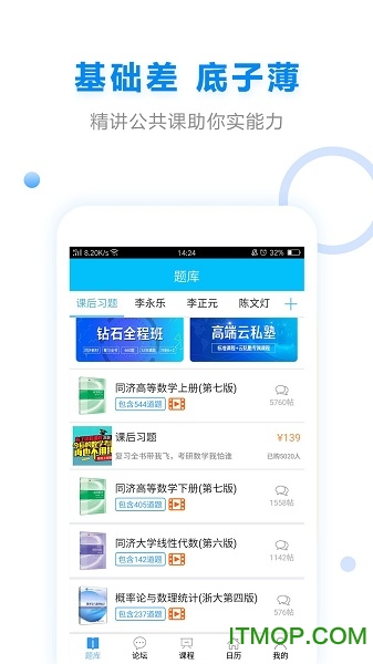 考研数学部分囊括数学一至数学三全部内容,包含高等数学、线性代数等核心科目。软件整合了李永乐考研数学复习全书、660题等权威资料,通过视频讲解与互动练习相结合的方式,帮助考生攻克数学难关。