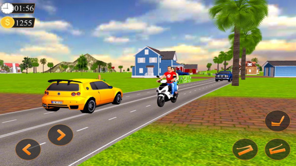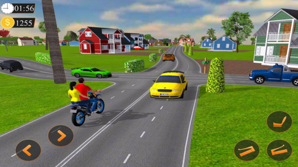《摩托出租车模拟器》是一款轻松有趣的摩托车驾驶模拟游戏。游戏采用精美的3D画面,为玩家打造了一个真实的小镇环境。玩家原本是一名摩托车特技手,但由于比赛热度下降而失业,不得不回到家乡成为一名摩托车出租司机。小镇居民对你的驾驶技术赞不绝口,每天都有大量乘客需要接送。在完成接送任务的同时,玩家不仅能提升驾驶技巧,还能获得丰厚的收入。游戏操作简单易上手,但想要成为小镇上最出色的摩托车司机,还需要不断磨练驾驶技术。