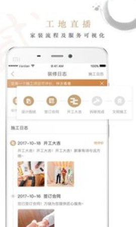 万链家装app现场实时查看实时更新客户正在装修的施工进度、施工内容、施工图片。