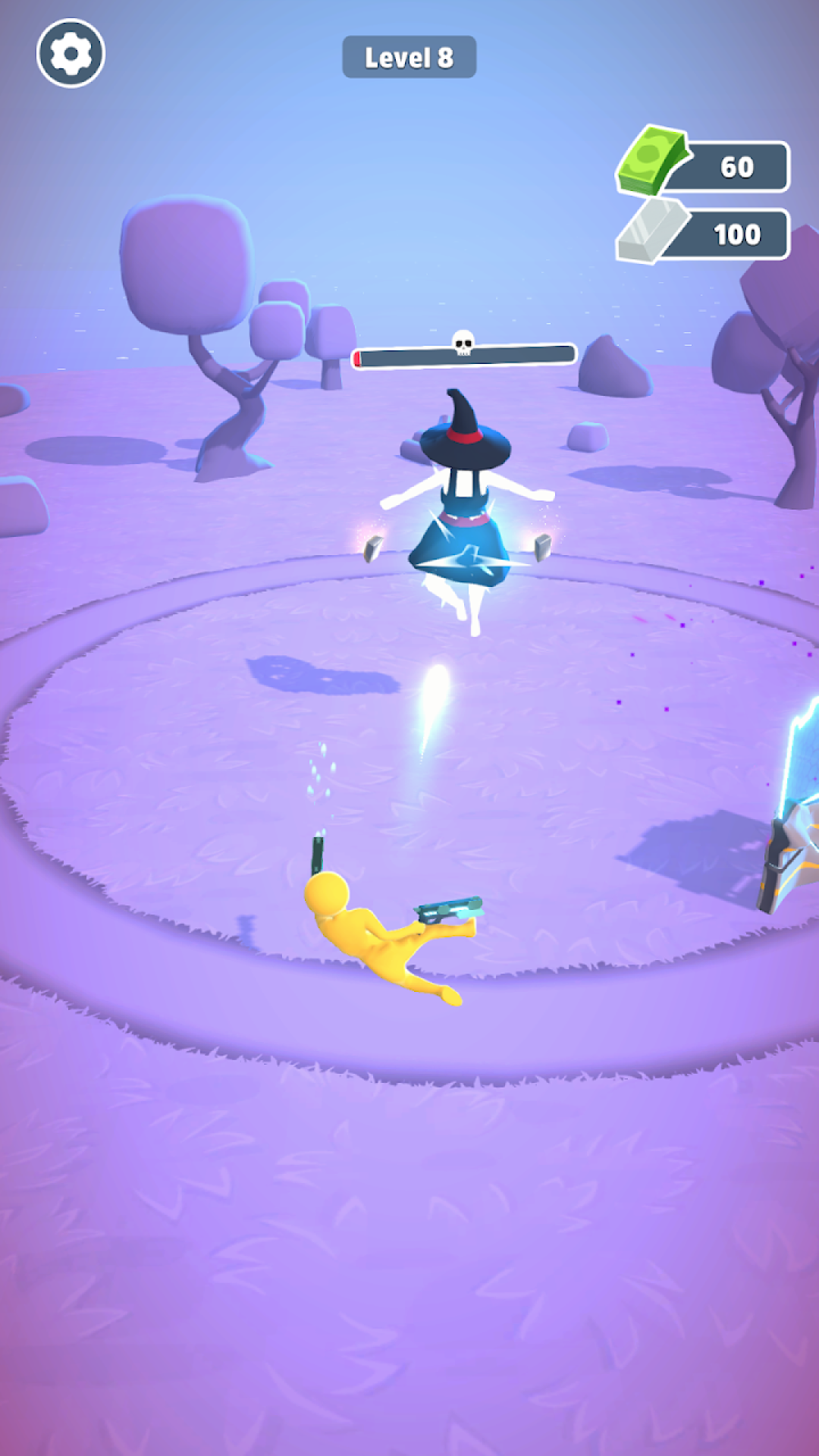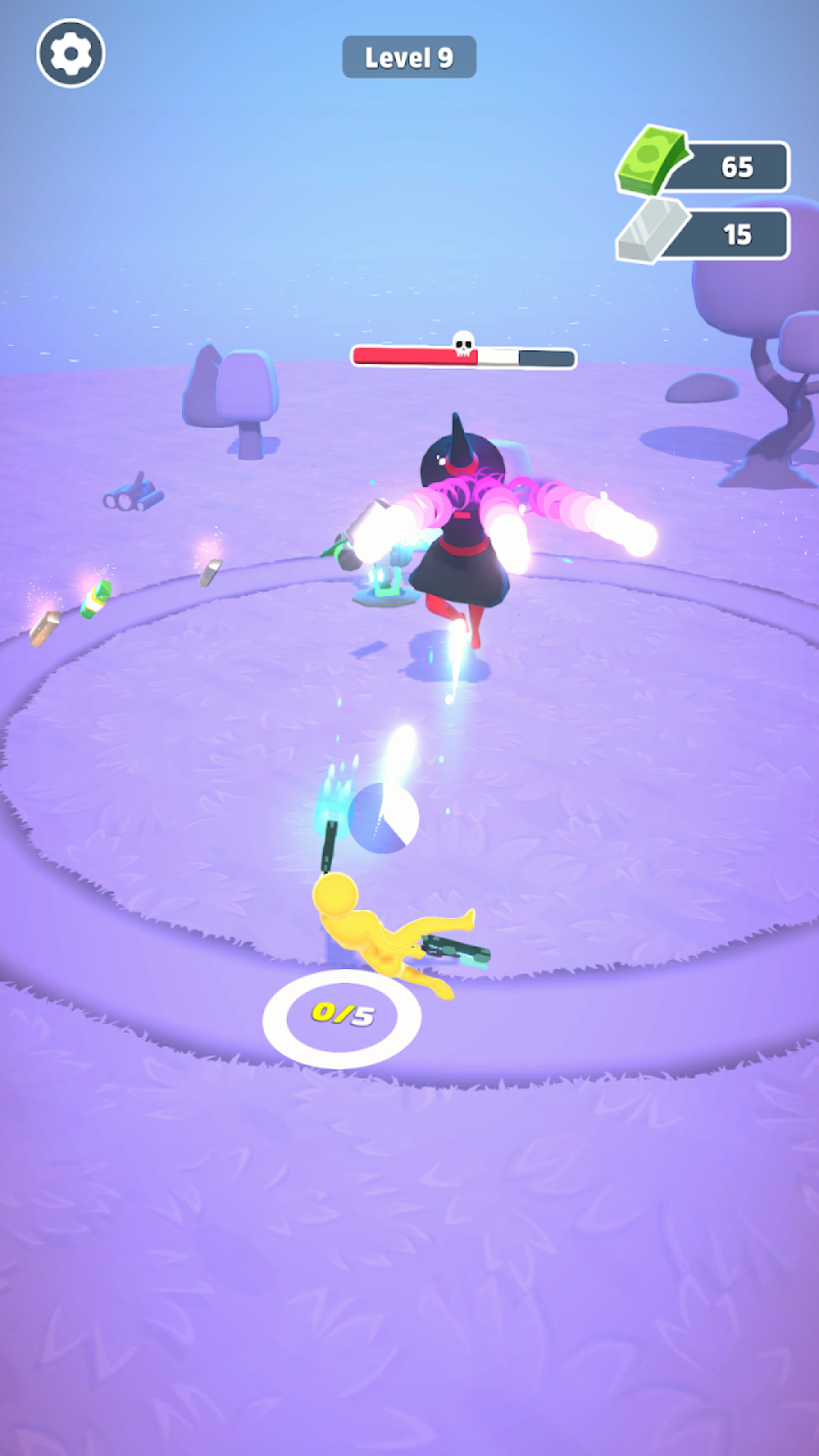 游戏核心玩法围绕消灭圆圈中心的BOSS展开,这种独特的环形战场设计为射击游戏带来了全新体验。玩家需要不断绕着圈圈移动,在保持安全距离的同时向BOSS发起攻击。通过击败敌人可以获得各种珍贵材料和装备,用于建造防御塔楼增强自身实力。游戏还加入了保护路障的玩法元素,需要玩家及时收集掉落在圈圈上的道具和资源。这种融合了射击、策略和资源管理的复合玩法,让游戏过程充满变数和挑战。