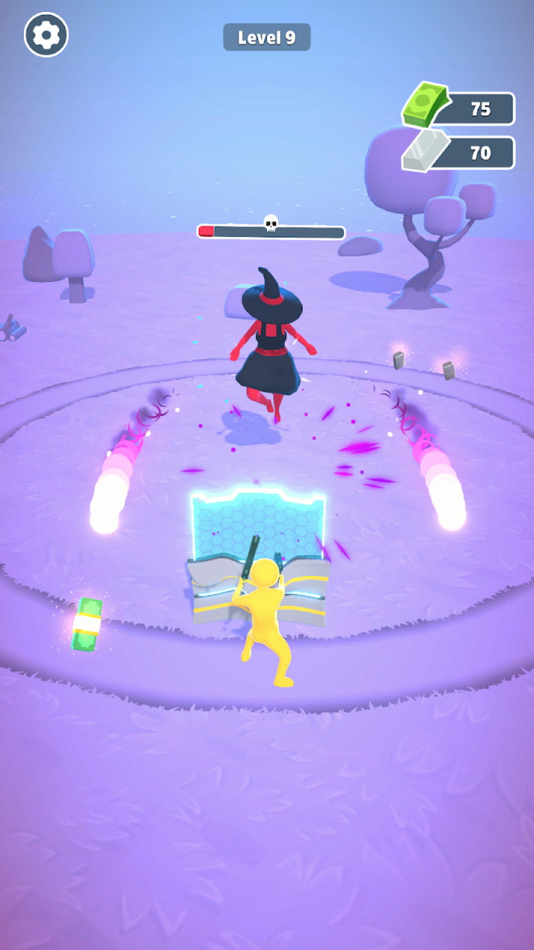 游戏对操作技巧有较高要求,玩家需要掌握精准的走位技巧,在躲避攻击的同时寻找最佳射击时机。虽然玩法规则简单易懂,但要成为高手需要快速的反应能力和灵活的手指操作。游戏提供了丰富的关卡内容,从简单到困难循序渐进,满足不同水平玩家的需求。最具吸引力的是线上真人PK模式,你可以与全球玩家实时对战,通过智慧和技巧争夺排行榜名次。游戏还加入了独特的射击目标盘系统,需要玩家计算角度和力度,一击必杀敌人并收集掉落的珍贵奖励。