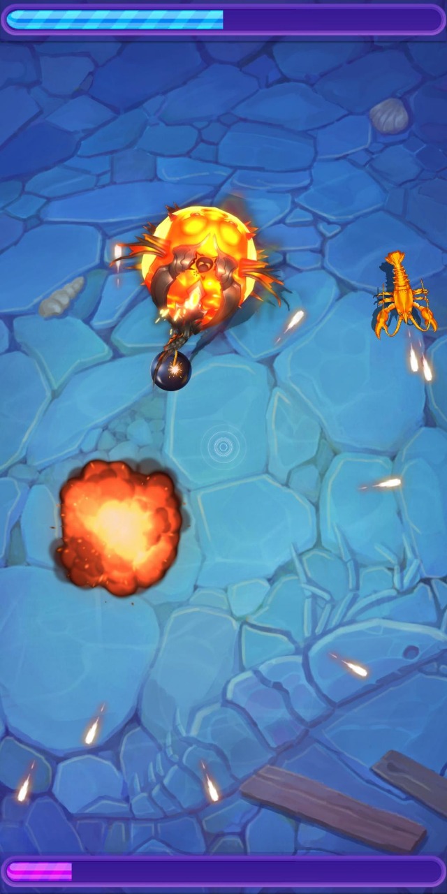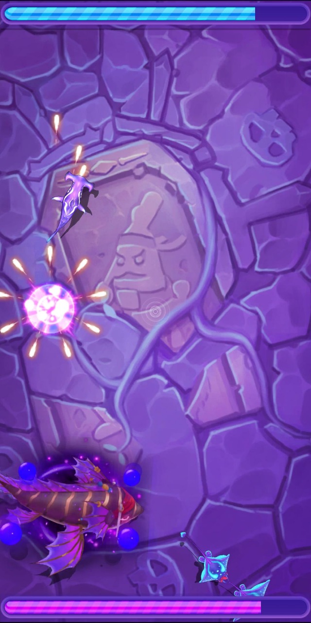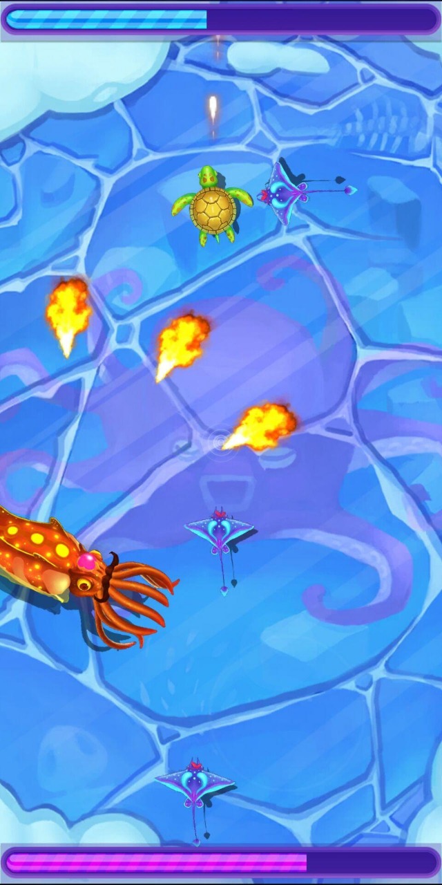关卡模式:采用360度全方位移动的弹幕射击玩法,每个关卡都对应着独特的海洋环境和强大的BOSS。这些BOSS不仅拥有惊人的体型,还会施展各具特色的弹幕攻击。玩家需要在有限的空间内灵活走位,同时发射自己的攻击来削弱BOSS。随着关卡推进,BOSS的攻击模式会越来越复杂,需要玩家不断磨练操作技巧。