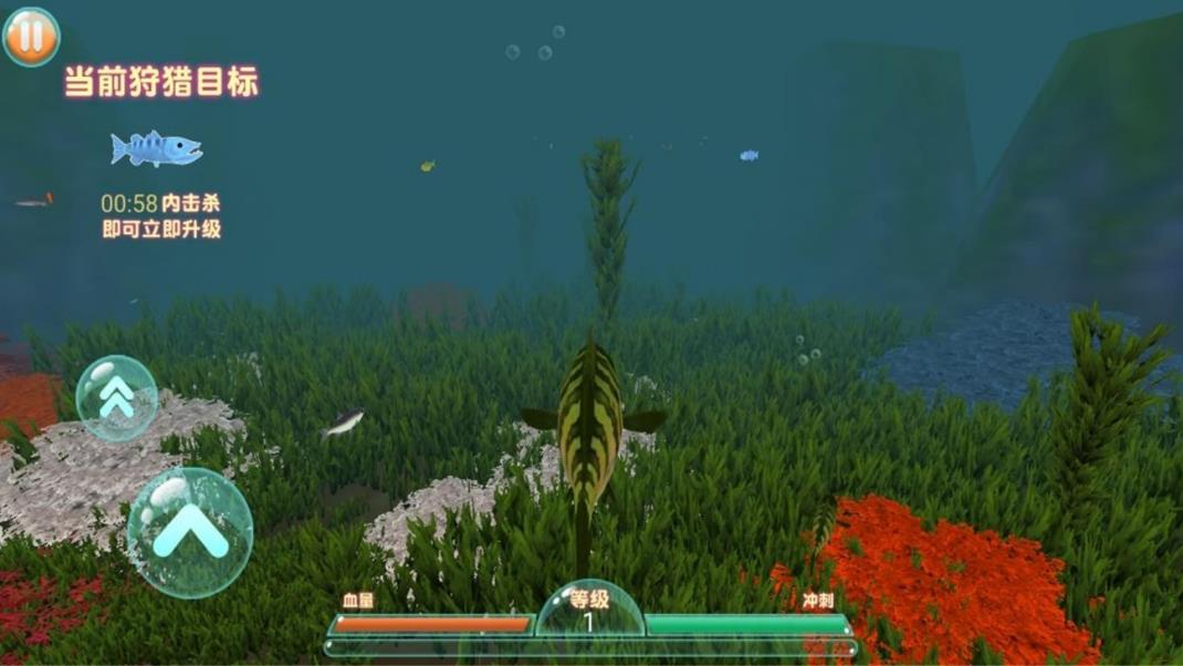 3、3D版的大鱼吃小鱼,游戏易上手,不断的进行探索一番。创新的多视角切换系统让你可以自由选择第一人称或上帝视角。实时物理引擎让每次猎杀动作都充满力量感和真实感,体验从追击到撕咬的全过程。