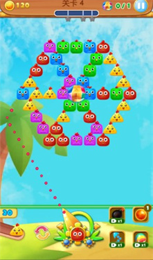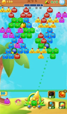 1、滑动屏幕瞄准并发射泡泡,通过精准操作将泡泡射向合适位置,掌握反弹技巧可以命中难以直接射击的区域;