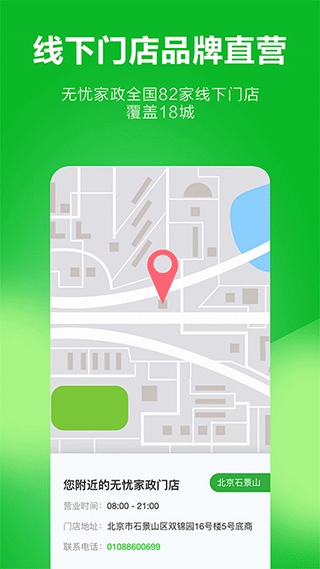 4、平台提供附近门店定位功能,您可以直接前往线下门店咨询,与家政顾问面对面沟通,获得更直观的服务体验。