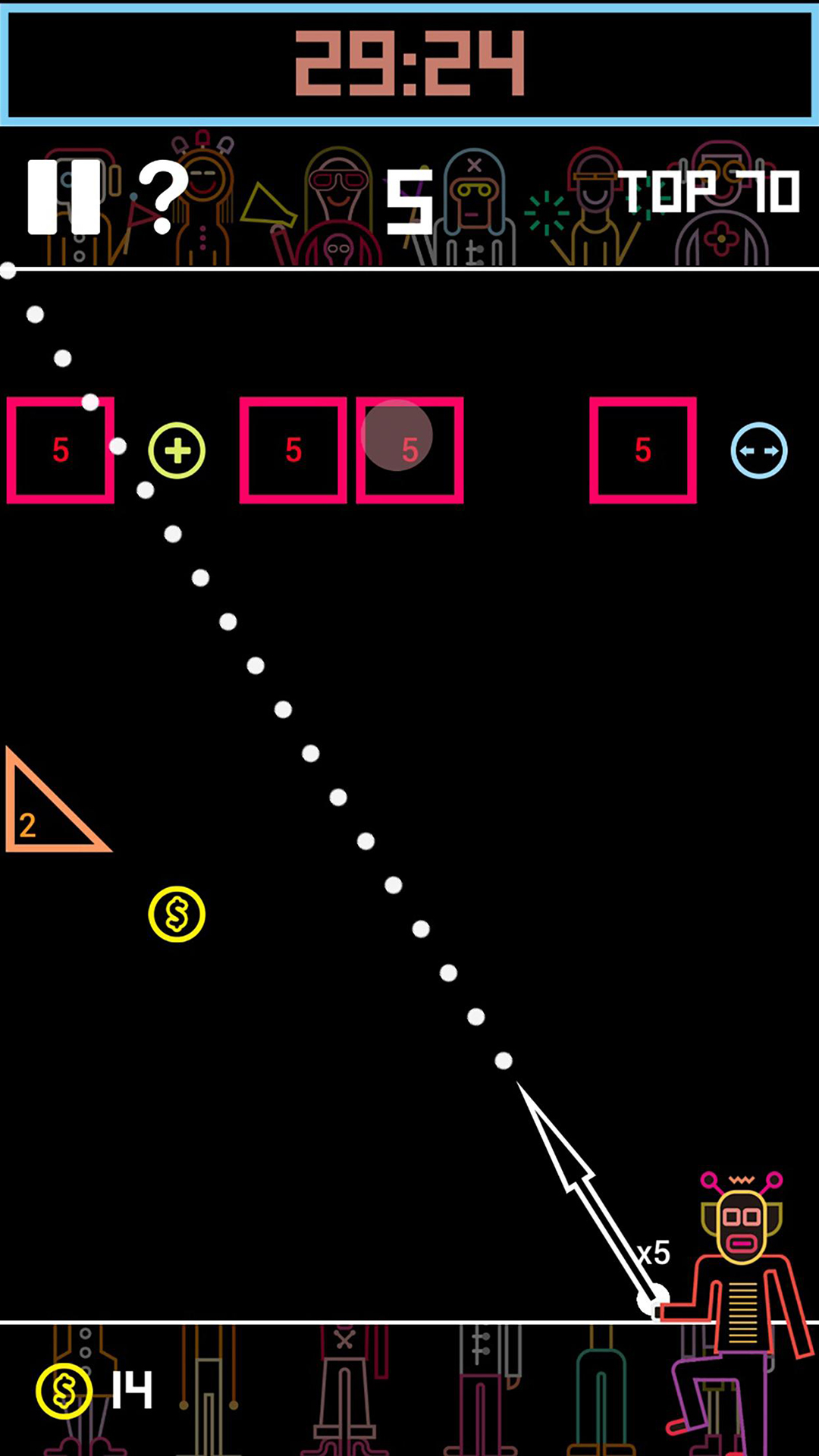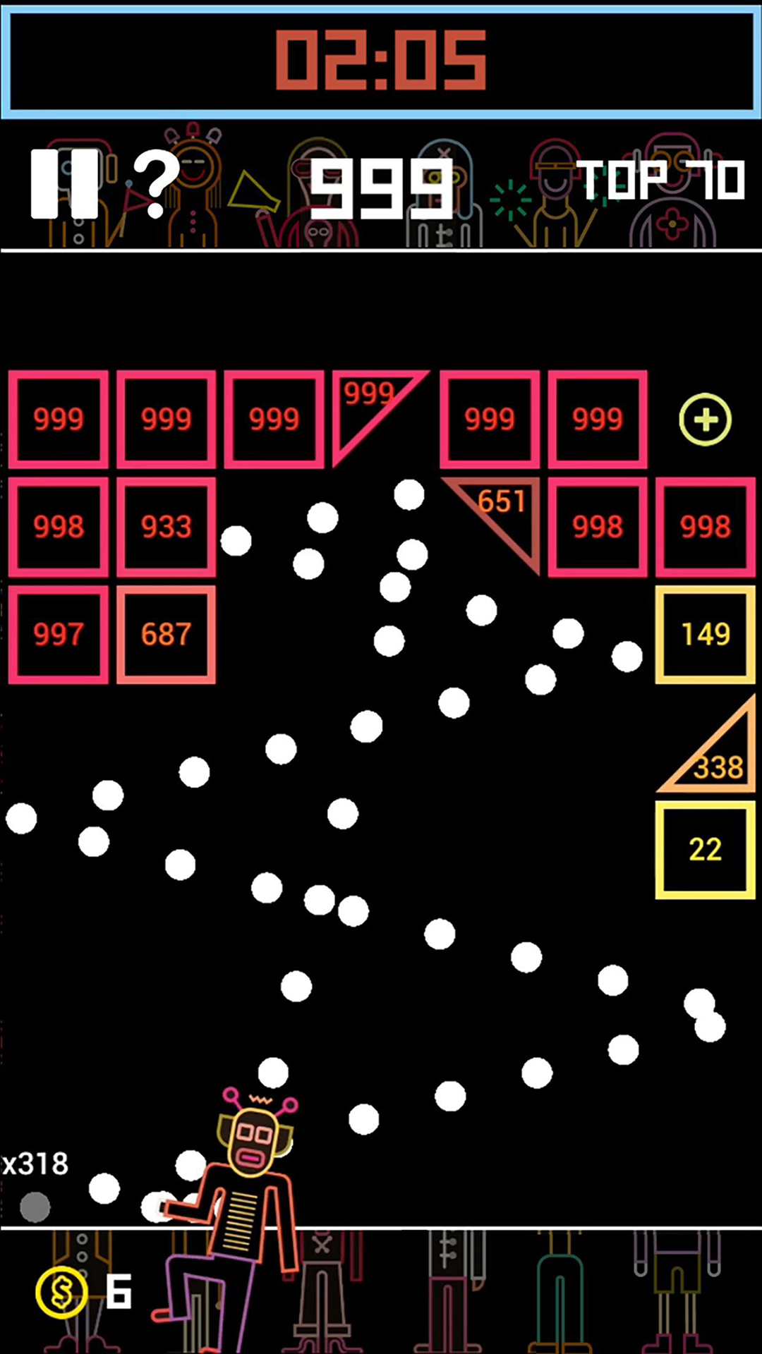 试图抓住分裂和弹跳的项目,使球更有效,游戏中会出现各种增益道具,合理利用这些道具可以大大提升通关效率。