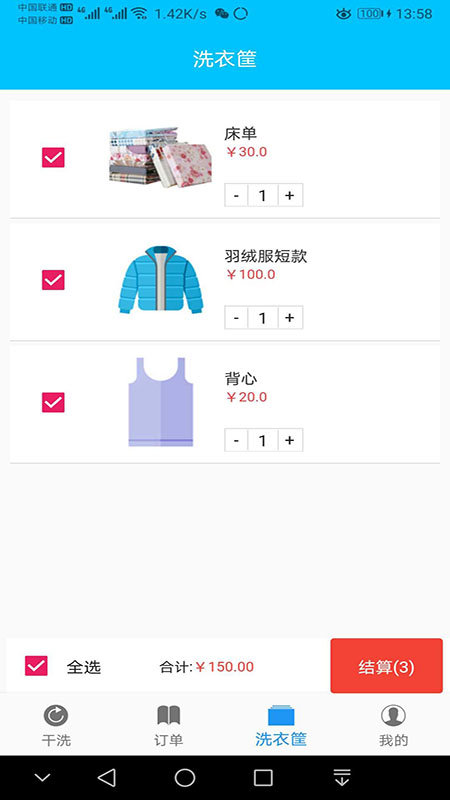 --灵活的洗衣类型和数量选择,下单时可实时查看订单金额和优惠明细,让消费更透明。