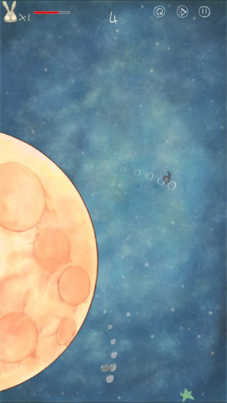 在游戏中,玩家需要精准控制自己的兔子与另一只兔子在月球轨道上保持追逐。两只兔子必须持续相互触碰来维持体力,这是游戏的核心机制。玩家通过点击屏幕调整跳跃高度和速度,确保两只兔子能够顺利相遇。每次成功相遇都会增加生命值,同时触发甜蜜的互动动画。随着游戏进程,玩家还会解锁更多有趣的互动方式和特殊剧情,让这段月球追逐之旅充满惊喜与感动。