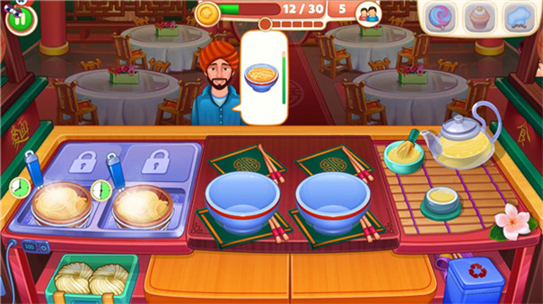 5、积累的金币不仅能解锁新菜品,还能购买智能厨具自动完成部分烹饪步骤