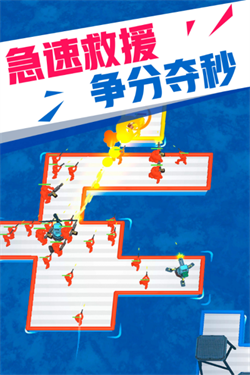 新手教程阶段请仔细跟随屏幕操作提示,通过滑动指尖来控制浮板移动,合理分配资源来增加士兵数量或扩建生存板块;